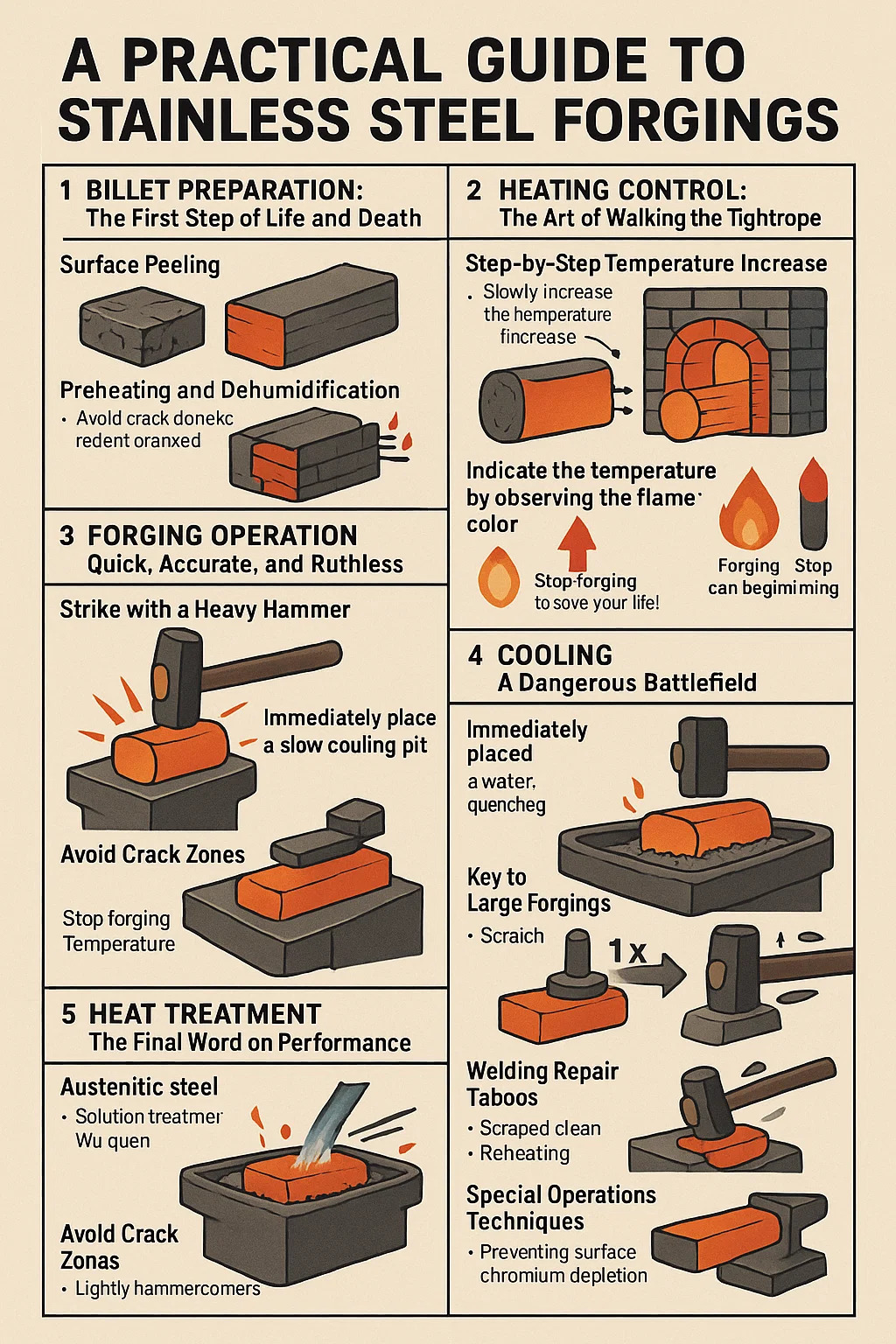Berhenti menempa suhu: baja austenitic ≥850 ° C, baja martensit ≥950 ° C (penempaan di bawah suhu ini pasti akan retak).