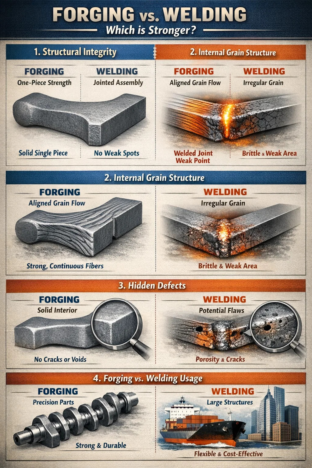 Biaya: Pengelasan cocok untuk struktur besar dan kompleks, sedangkan penempaan lebih cocok untuk komponen presisi dan kuat.