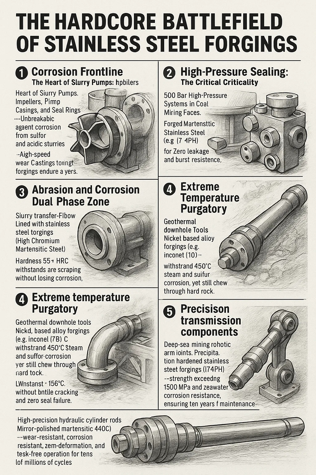 Peralatan lubang bawah panas bumi: Tempa paduan berbahan dasar nikel (misalnya, Inconel 718) – tahan terhadap korosi uap dan belerang pada suhu 450°C, namun tetap dapat menembus batuan keras.