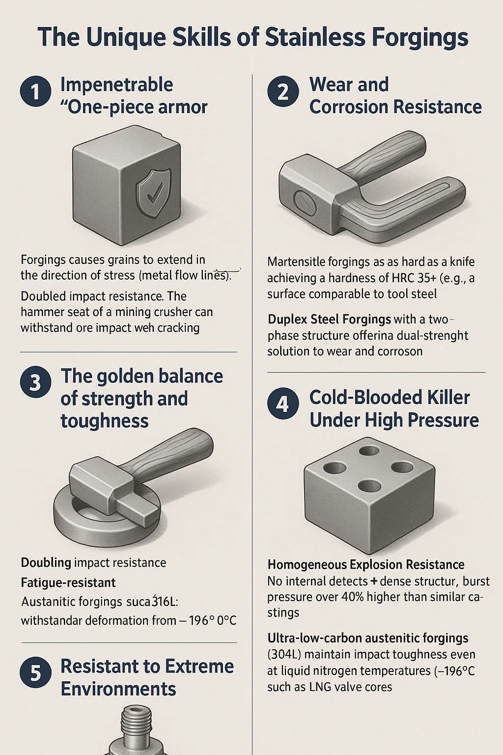 Kekakuan dan fleksibilitas: Tempa austenitik (seperti 316L) sangat tangguh, tahan terhadap deformasi dari -196°C hingga 800°C.