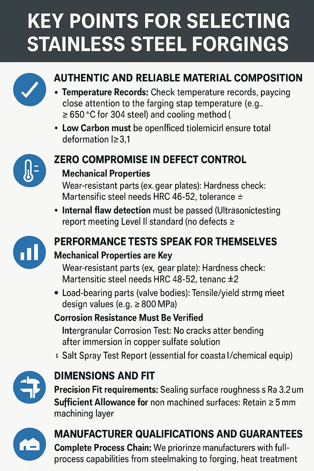Catatan Suhu Harus Diperiksa: Minta kurva pemanasan, perhatikan baik-baik suhu penghentian penempaan (misalnya, ≥850℃ untuk baja 304) dan metode pendinginan (pendinginan air/pendinginan lambat).